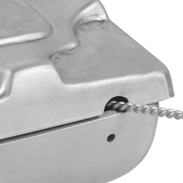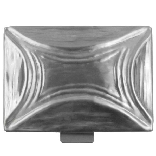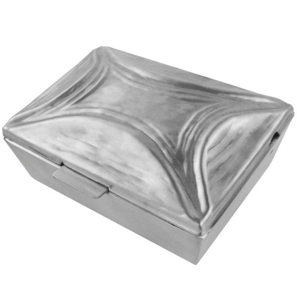 Weihwasserbecken Edelstahl mattiert. Weihwasserkessel rechteckig mit Deckel und Befestigungsbohrung.
