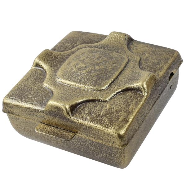 Weihwasserbecken klassisch in bronze, Stahl mit Deckel. Weihwasserbehälter mit Aussparung für Weihwasserpinsel und Befestigungsbohrung, verschraubbarer Boden. Befestigung nicht enthalten.