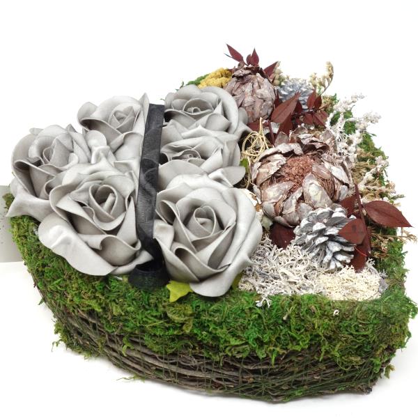 Lieferung: 1 Stück komplettes Herz Grabgesteck individuell handgefertigt wie abgebildet