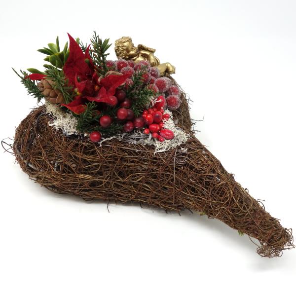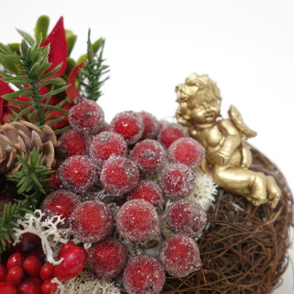 Kleines Trauerherz handgefertigt, Engel, Beeren, Zapfen. Gefertigt mit Ponsietta. Herz aus Naturzweige. Trauertage Grabgesteck liebevoll handgefertigt als Einzelstück.