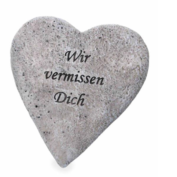 Herz zum stellen Wir vermissen Dich Gravur. Mit Halterung zum ausklappen. Farbe: grau antik.