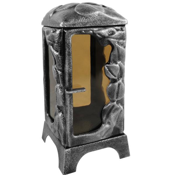 Grablaterne Grablampe alufarben mit Tür und Parsol Glasscheiben. Aus hochwertigen Stahl gefertigt im würdevollen Design. Nur für den Außenbereich geeignet. Maximal 3 Tage Brenner mit Schutzhülle. Material: Stahl, Glas Parsol.