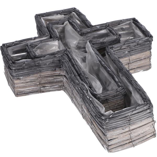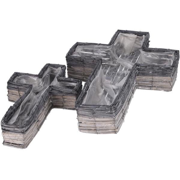 Grab Pflanzkreuze Natur Spaltweide mit Folie ausgelegt in 2 Größen geliefert, grau gewaschen. Hochwertige Verarbeitung für alle Einsatzmöglichkeiten im floristischen Bereich.