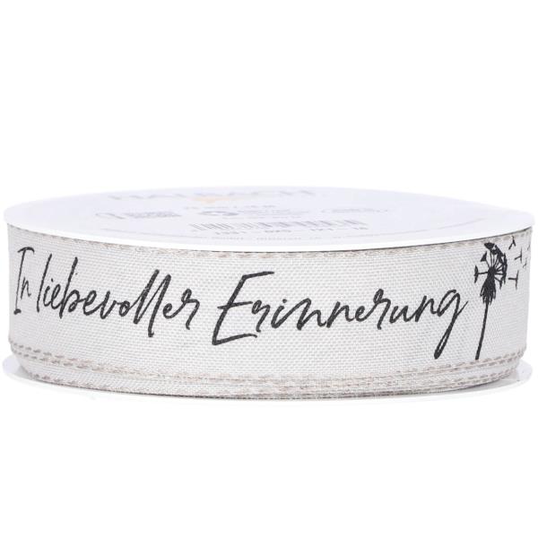 Trauerband In liebevoller Erinnerung. Stilvoll für alle Traueranlässe. Bestens geeignet für die florale Gestaltung mit der besonderen Note für Arrangements. Farbe: Grauhell.