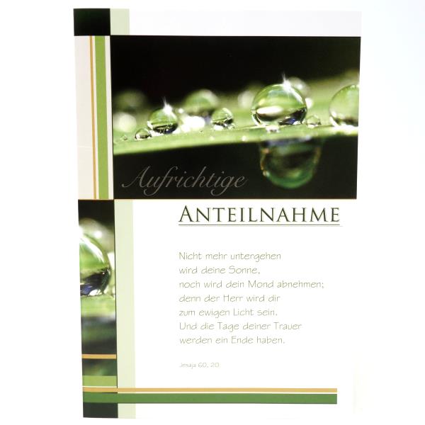 Aufrichtige Anteilnahme, Kondolenzkarte Text und Briefumschlag